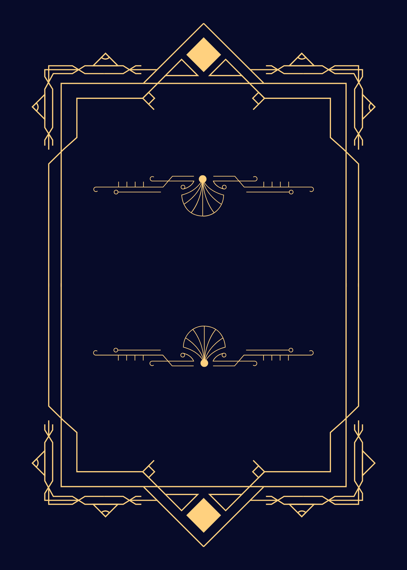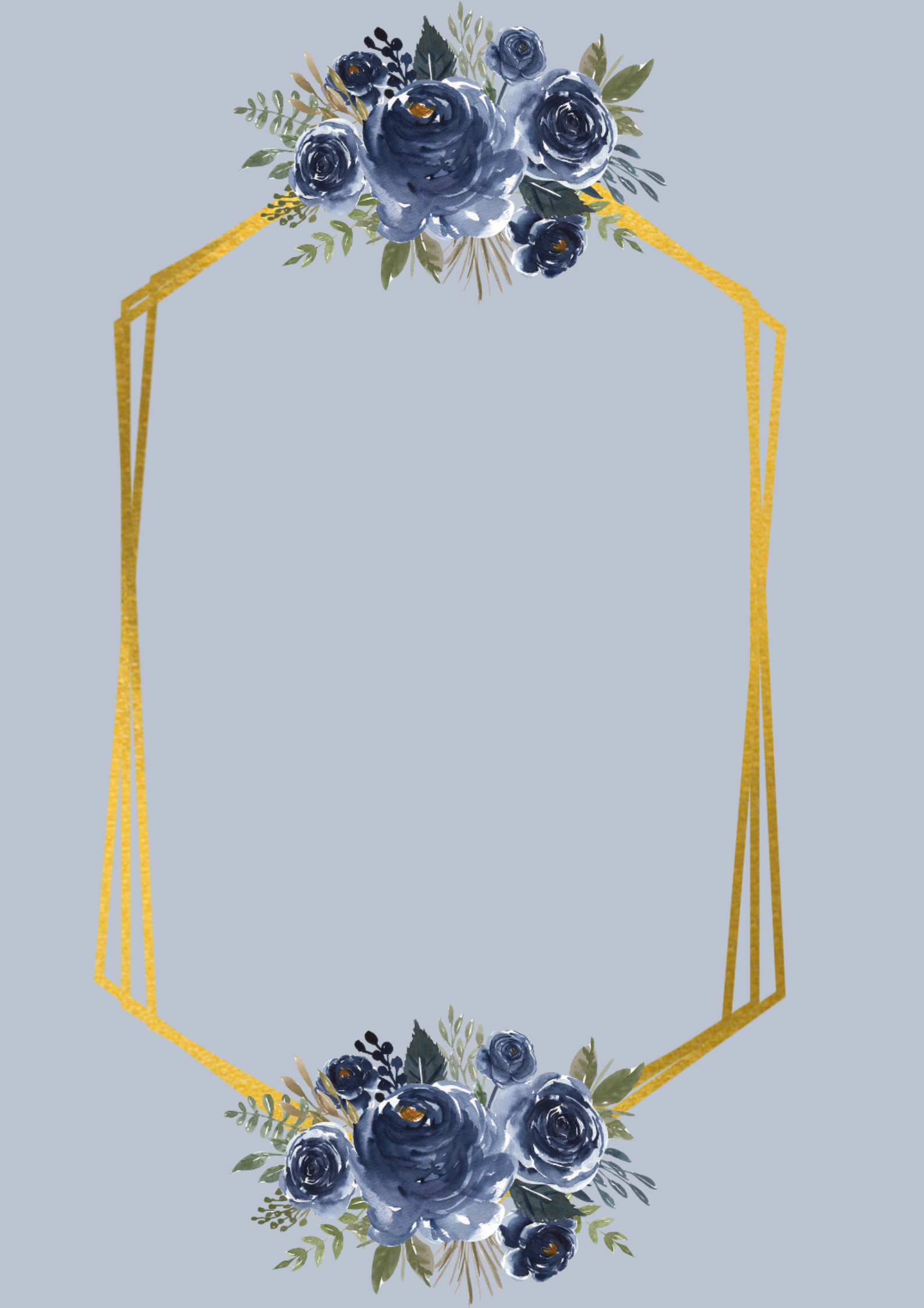 Decorative Blue and Gold Wedding Invite with geometric shapes