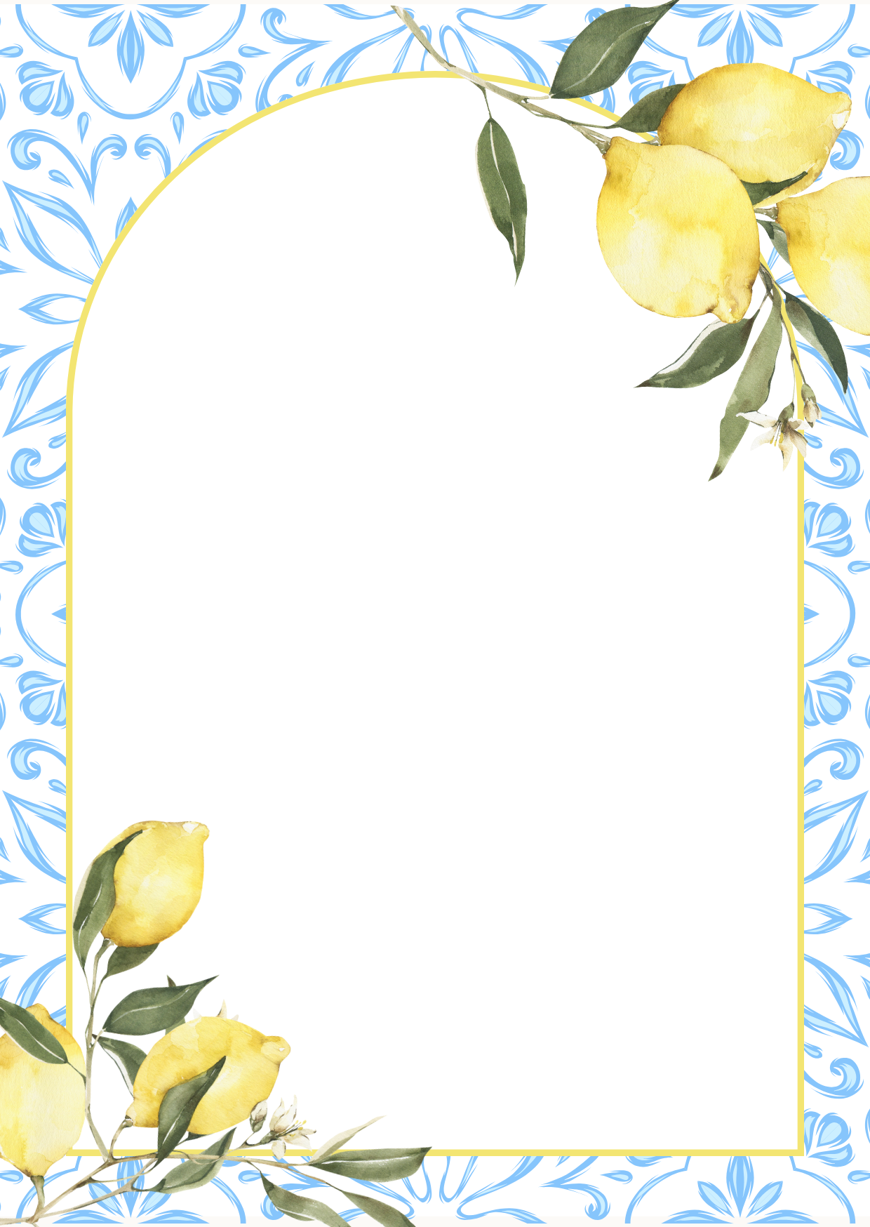 Mediterranean lemons in blue and sun-yellow — fresh, zesty, and joyful.