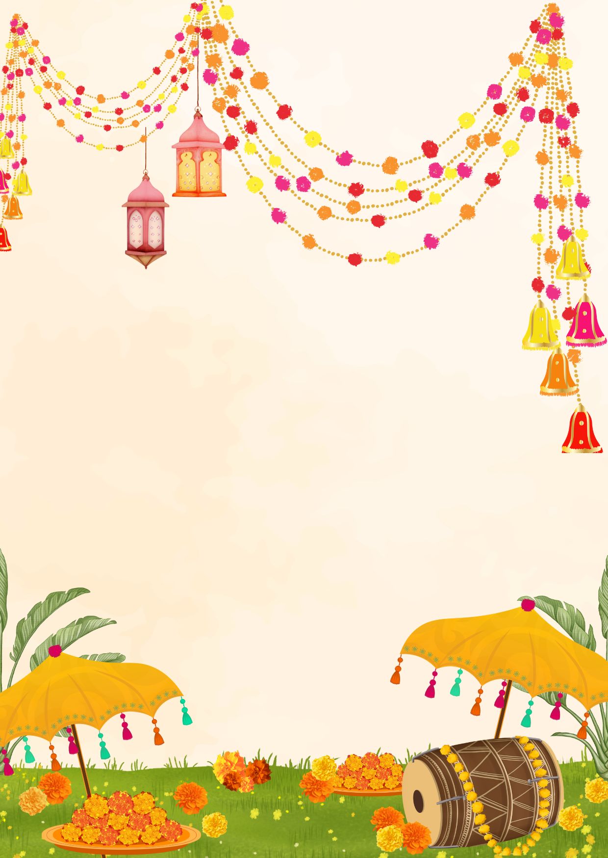 Joyful haldi hues — turmeric yellow and fresh green in festive watercolor.